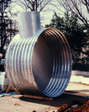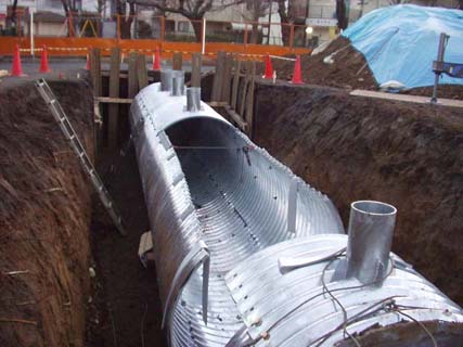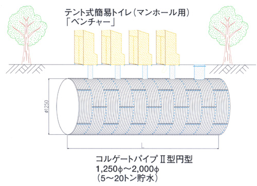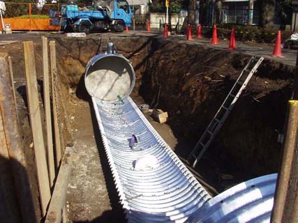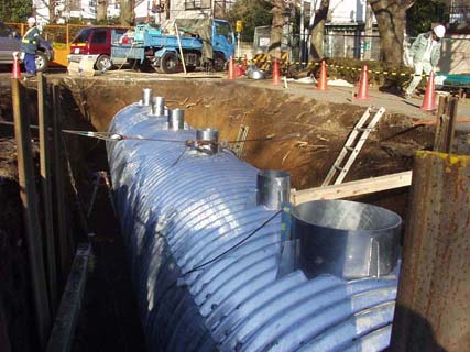 | 中規模広場・公園・校庭に最適な、中規模防火水槽です。 校庭・駐車場の排水や、隣接校舎・マンションの屋上排水を内部の貯留水に利用出来ます。 内部の排水ポンプは、コンセントBOXを設けて発電機での作動も可能です。 コルゲートシートを繋ぎ合わせて施工する為、大型重機・トラックを必要としません。 学校に設置の場合、縄張り・地切りから施工・埋め戻しまでを冬休み期間中に行うことも可能です。 |